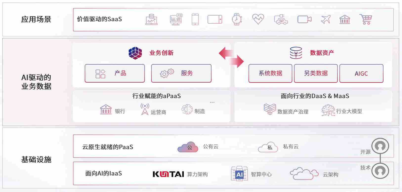 数字时代,,,围绕企业数字化转型的关键要素,,,,乐天堂官网数码开创性的提出数云融合战略和技术体系框架,,,着力在云原生、、、、数字原生、、AI原生和信创产业上架构产品和服务能力,,为处在不同数字化转型阶段的快消零售、、汽车、、、、金融、、、、医疗、、、政企、、、教育、、运营商等行业客户提供泛在的敏捷IT能力和融合的数据驱动能力,,,构建跨界融合创新的数字业务场景和新业务模式,,,助力企业级客户建立面向未来的核心能力和竞争优势,,全面推动社会的数字化、、、、智能化转型升级。。